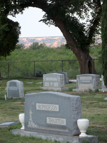 Cemetery with the caprock in the background.