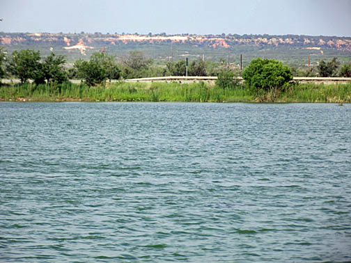 City lake with caprock in the background.
