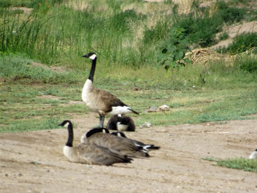 Geese along the lake's edge.